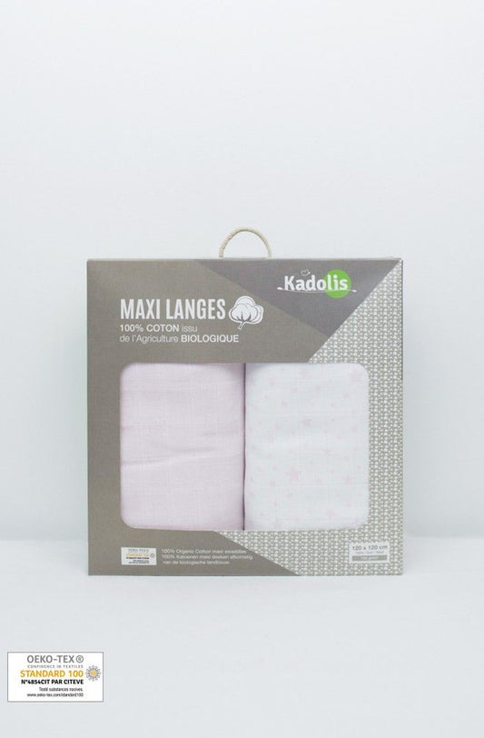 Langes - Maxi 120*120 - Lot de 2 -Coton bio - Kadolis